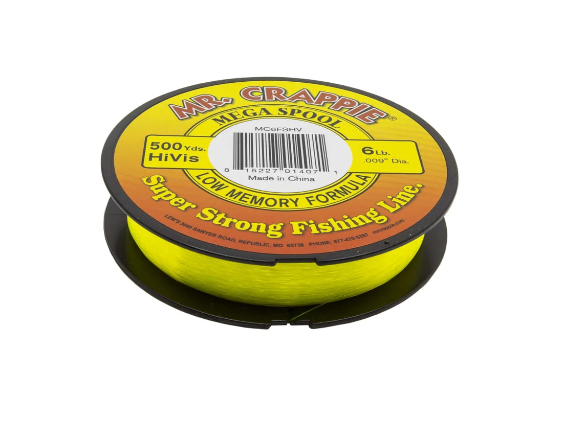 Mr. Crappie Monofilament Fishing Line Is created with crappie anglers in mind. It’s ideal for spooling the smaller reels used to catch panfish and has ultra-low memory for superior line control. The abrasion-resistant formula is amazingly tough, which means you can present bait in dense cover with confidence. Select from Clear, Hi-Vis, and Camo in a range of popular sizes. For strong, limber, and durable mono that’s made for crappie fishing, spool up with Mr. Crappie Monofilament Fishing Line!